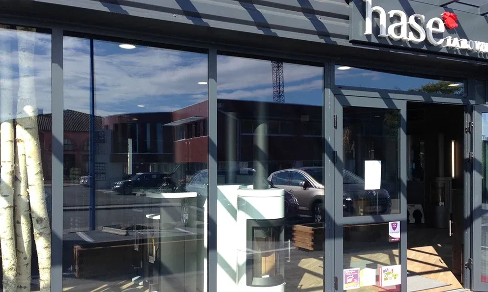 J’ai traité la vitrine comme une succession d’écrins, où chaque poêle HASE est mis en valeur dans une mise en scène visuelle soignée, avec un éclairage précis et une lecture fluide depuis l’extérieur.
