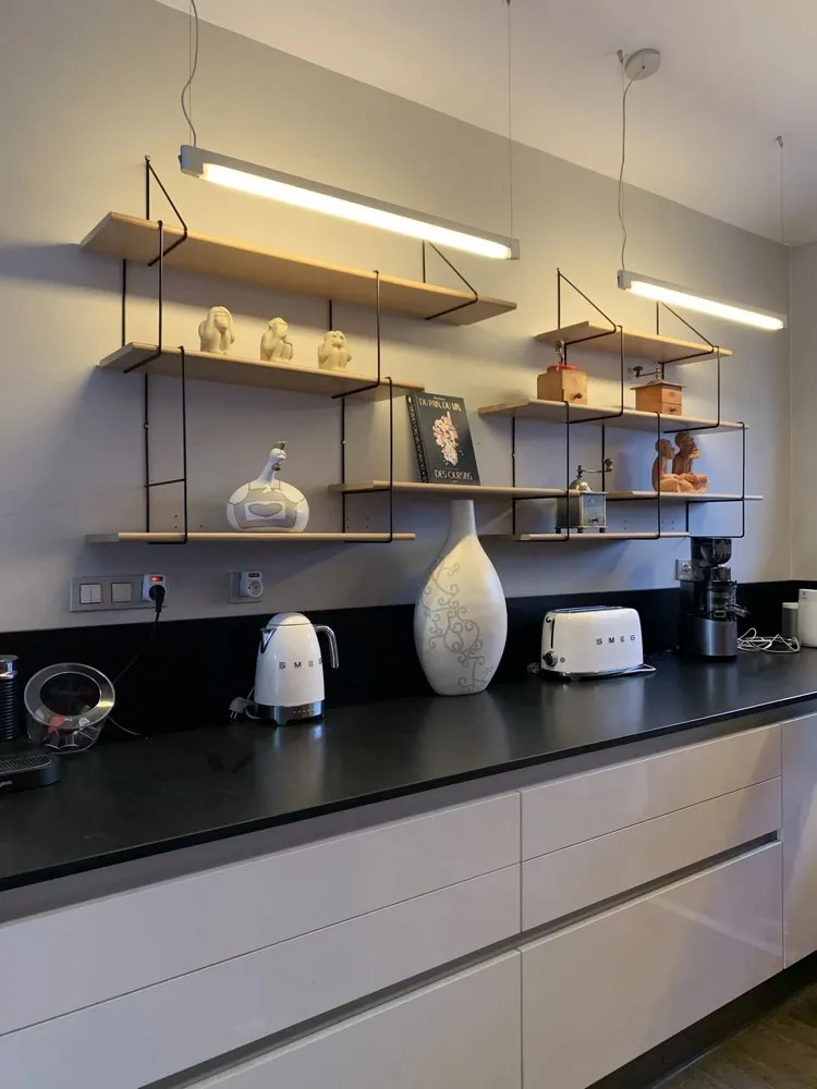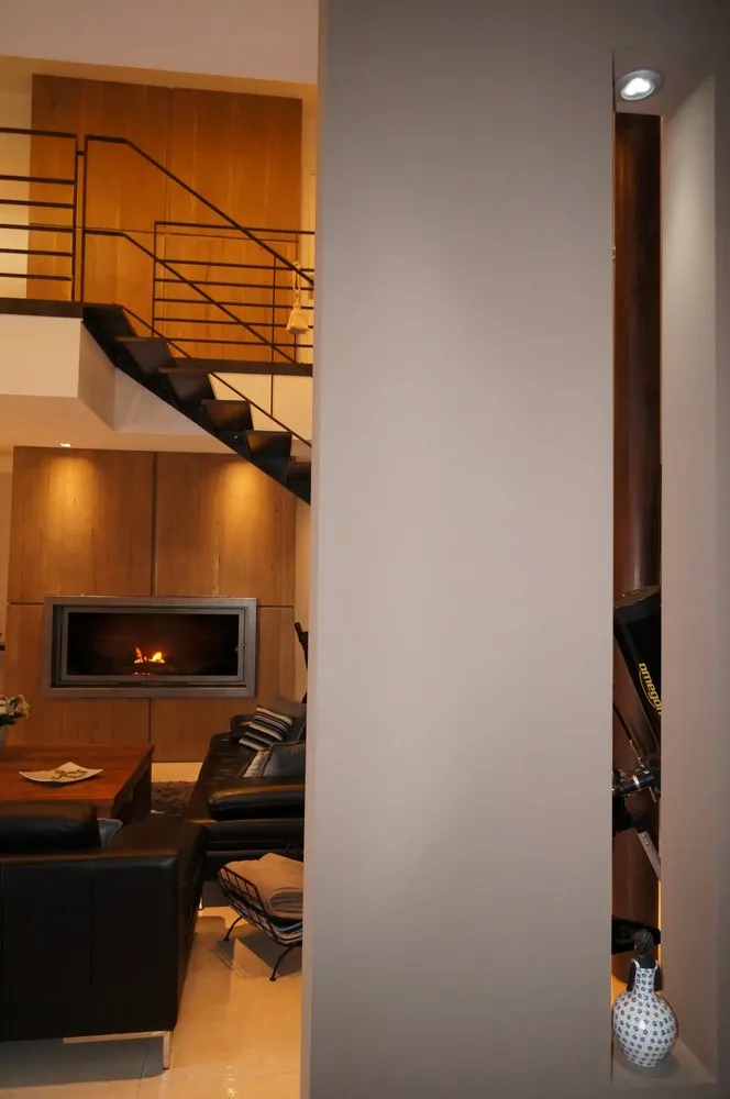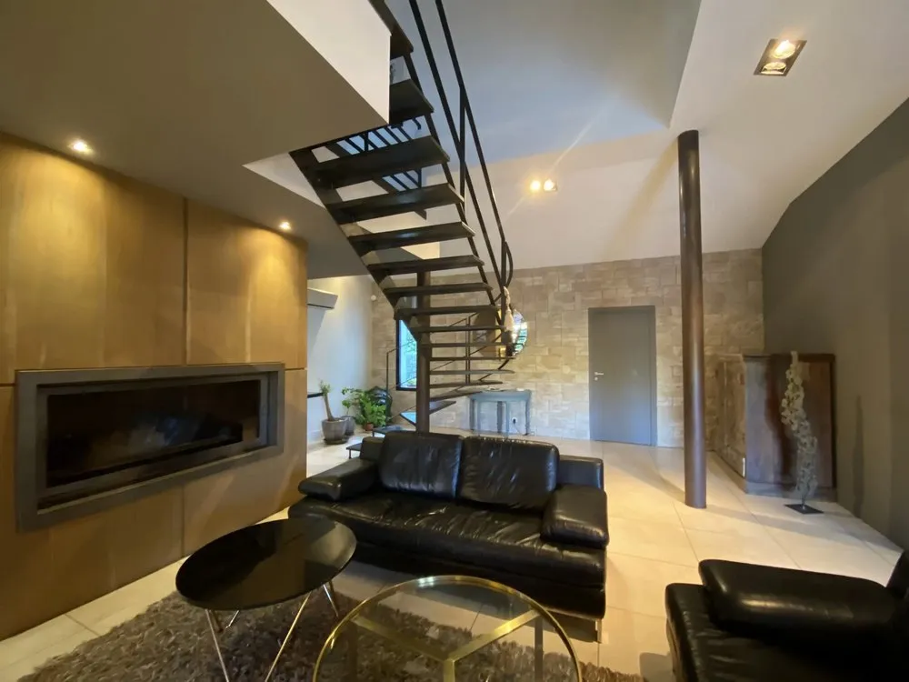 - Un bureau en mezzanine, ouvert sur le salon, qui surplombe l’espace de vie avec élégance