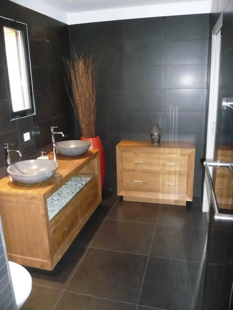 - Des salles de bain traitées avec soin, jusque dans le dessin du mobilier sur mesure